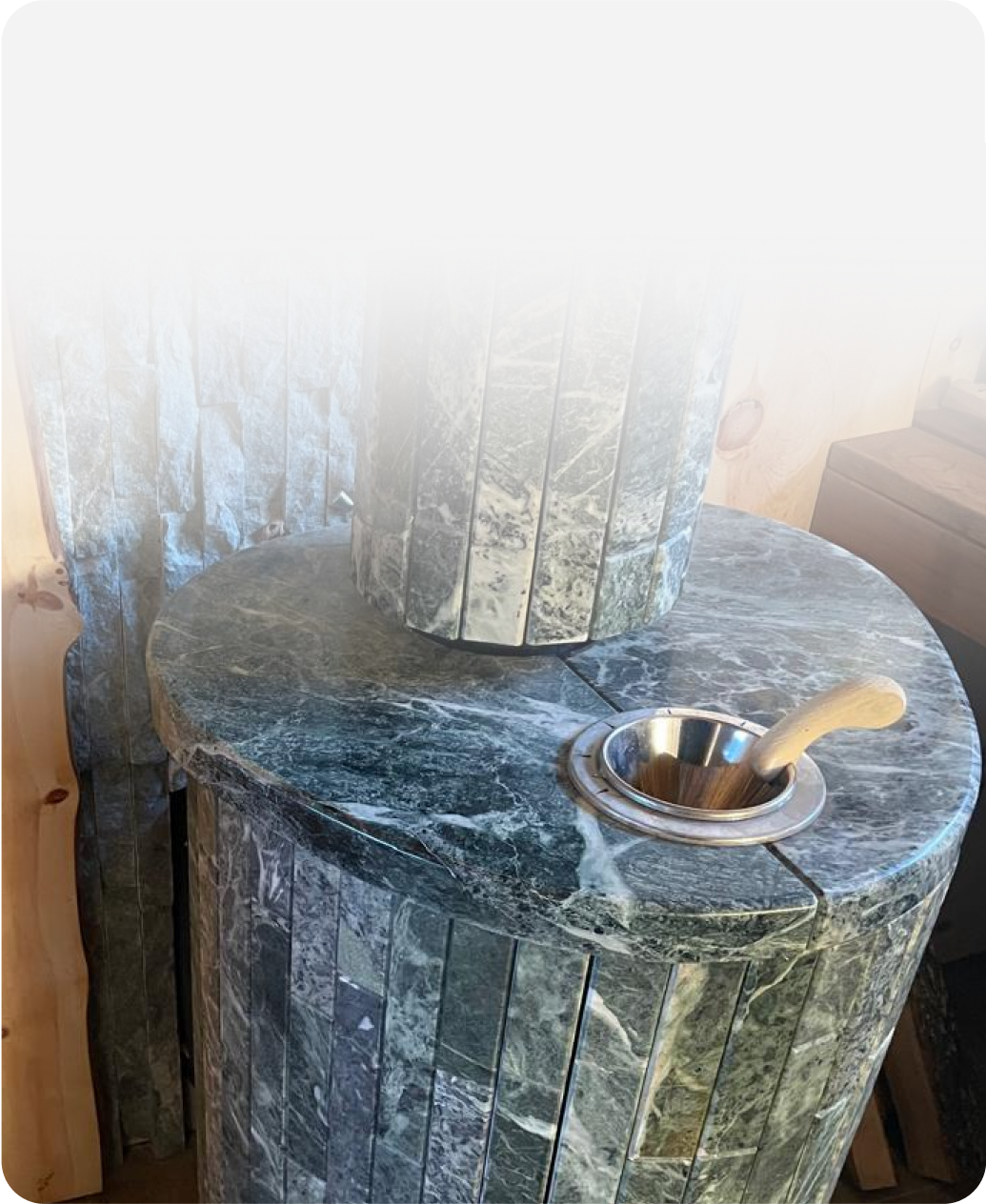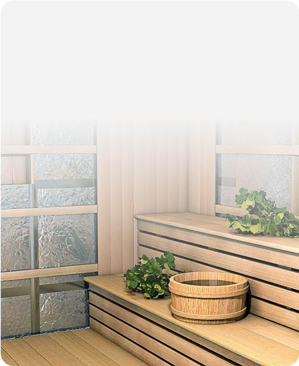 Стены в парной обшиты слэбом кедра, для лучше аккумуляции тепла и атмосферы настоящей русской бани.