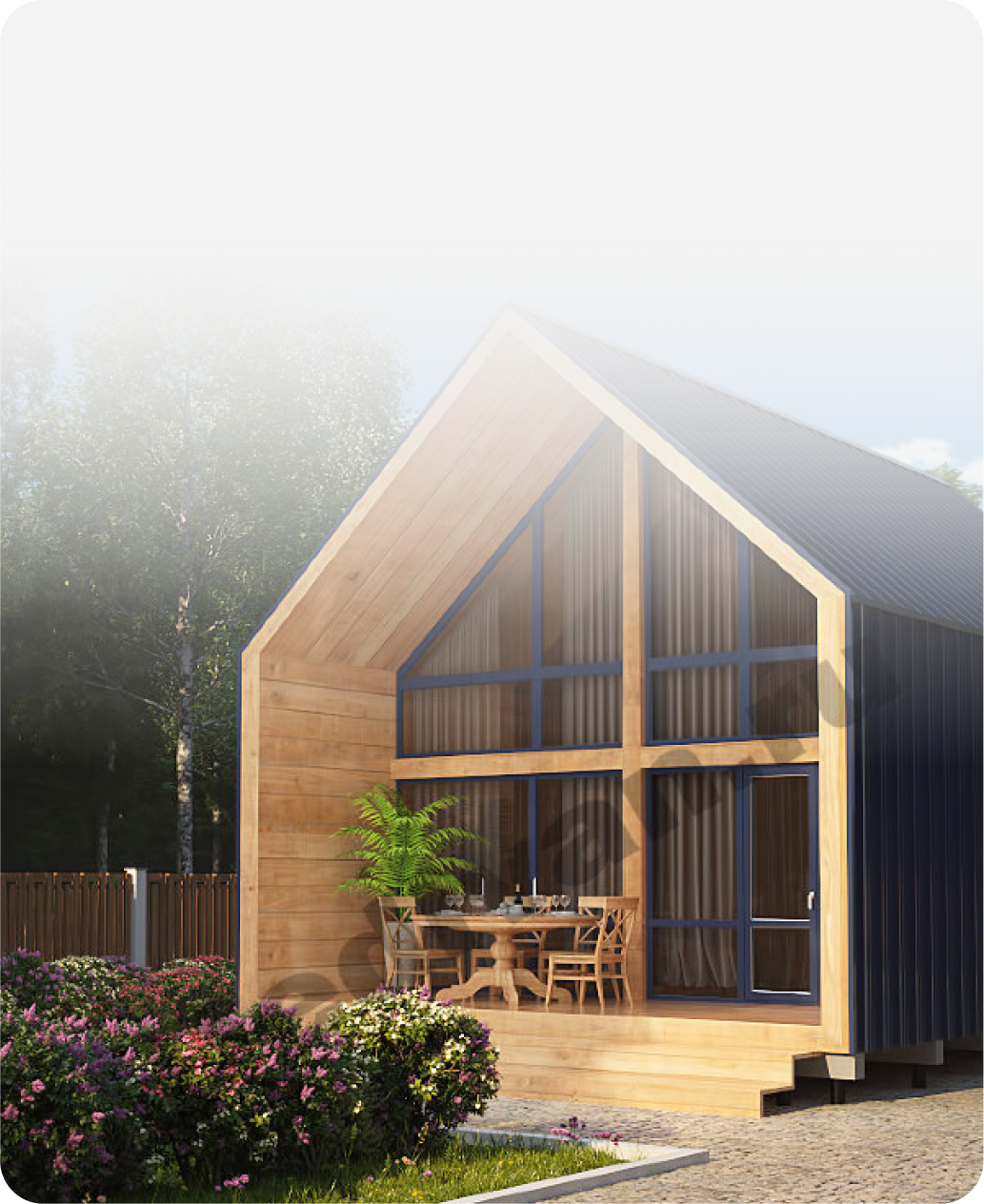 Фасад и кровля могут быть обшиты любым материалом на выбор.