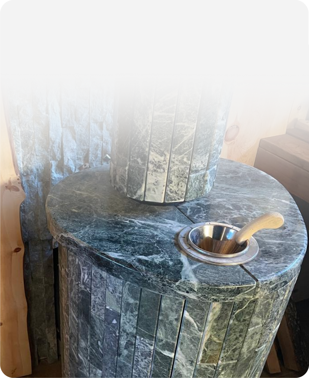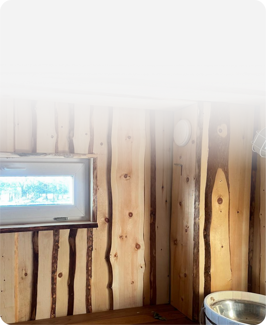 Стены в парной обшиты слэбом кедра, для лучше аккумуляции тепла и атмосферы настоящей русской бани.